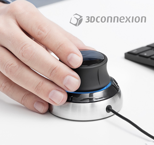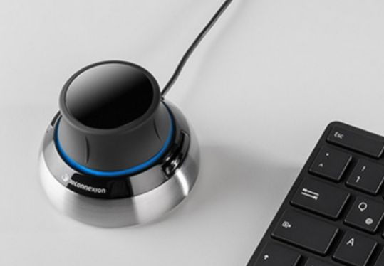 Each of our software primary canvas movement tasks can be allocated to any of the SpaceMouse primary controls. The supporting code is already standard as part of our out-of-the-box software installation, so it's a simple case of plugging the SpaceMouse in and away you go. With two side buttons, plus the tactile push/pull, twist, lift and depress capabilities of the joystick the option of what function to dedicate to each movement or button is down to the individual.